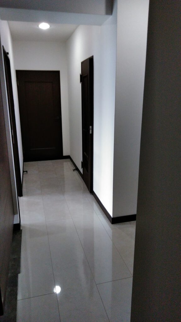 廊下を板張りからリフォーム。明るく高級感のあるイメージになりました。